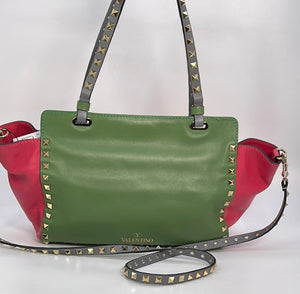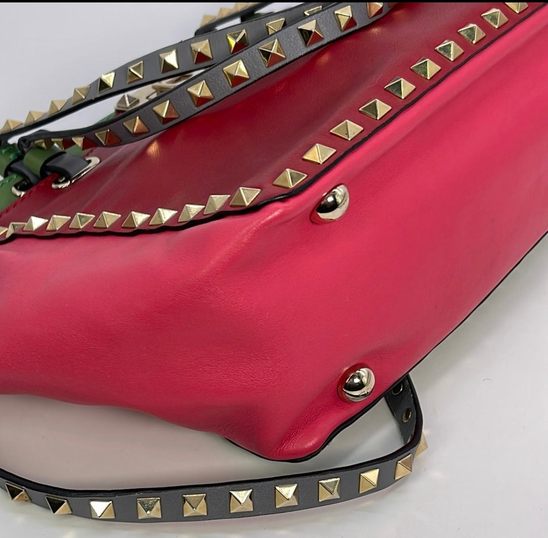 Preloved Valentino Red, Pink, and Green Leather Rockstud Tote with Crossbody Strap BLH037VMQ3 120822