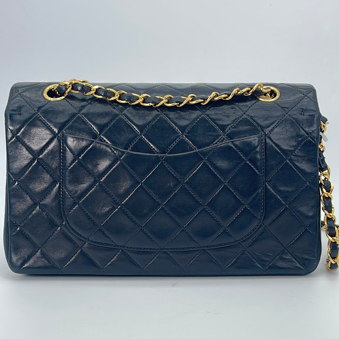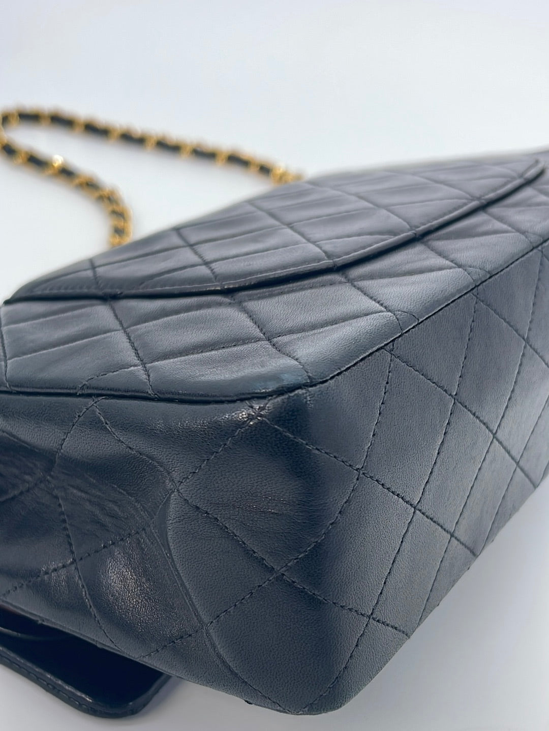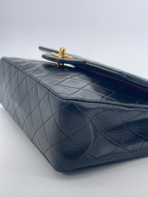 Vintage CHANEL Black Lambskin Medium Double Flap Matelasse Chain Shoulder Bag