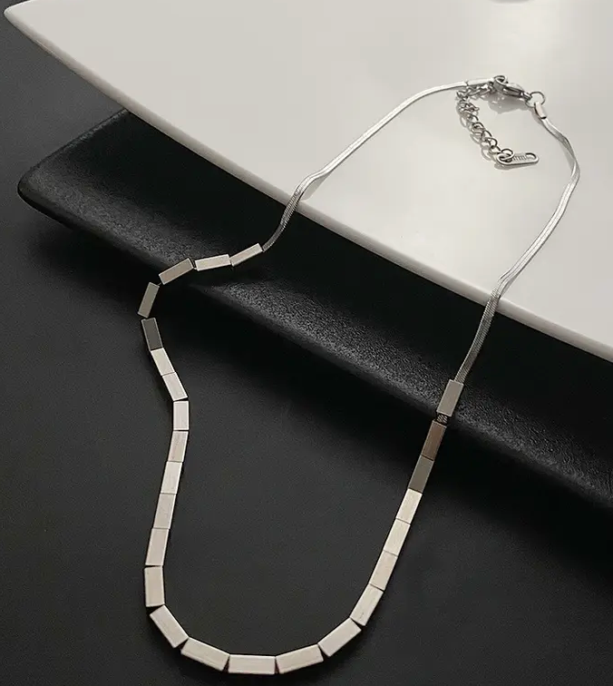 Silver (White Gold) Square Charm Necklace Herringbone Chain Necklace (18K Gold Plated Stainless Steel) DEAL OF THE DAY - LIVE SHOW 072123