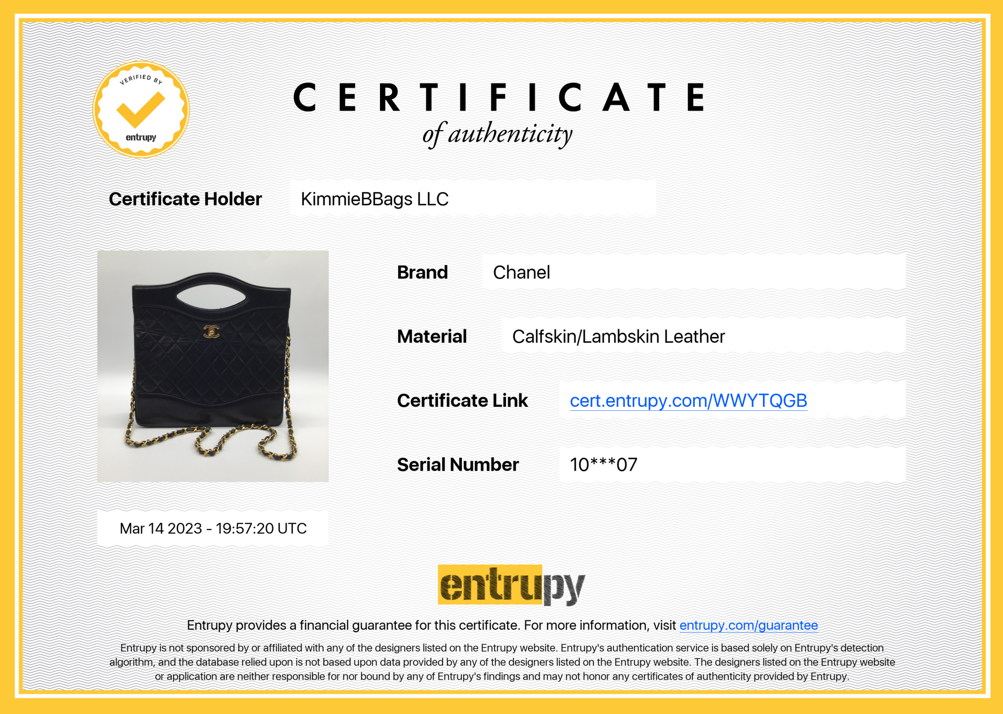 *KimmieBBags LLC is not affiliated with Chanel resold on this site. All bags are on consignment, pre-loved and are in used and/or vintage condition. All bags, wallets, and agendas are guaranteed Authentic by a third party Entrupy. A certificate will accompany each item purchased to verify authenticity.