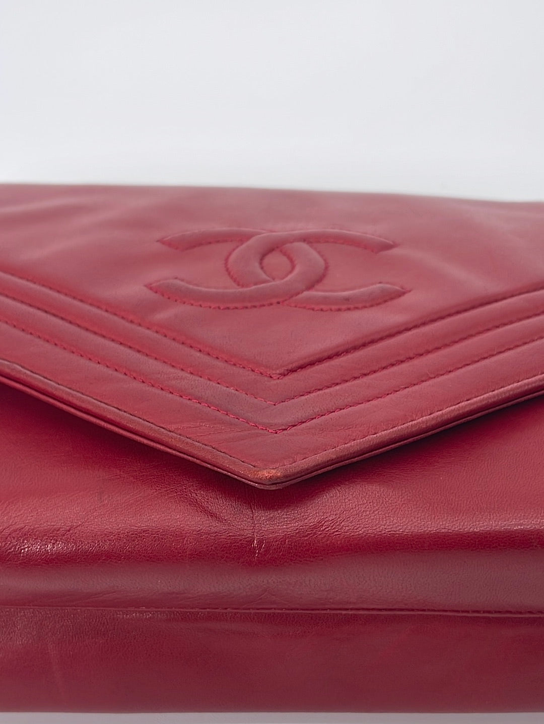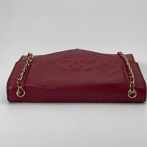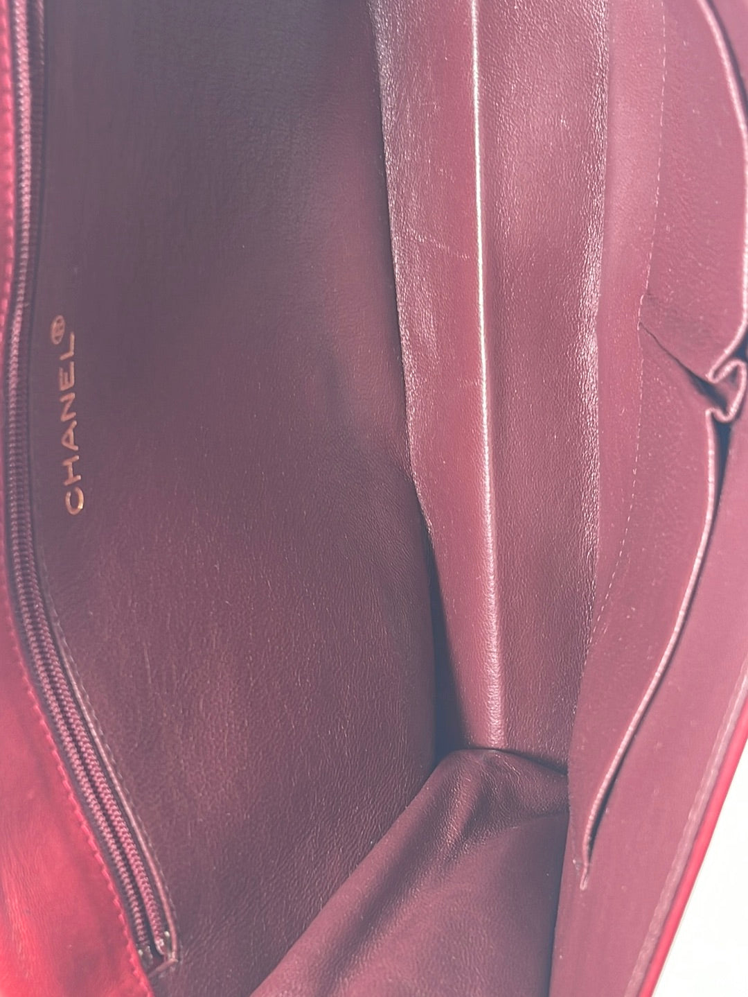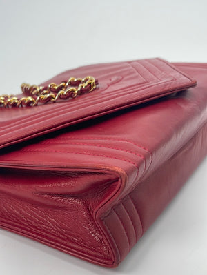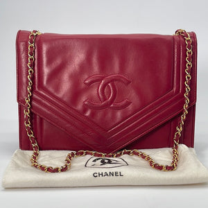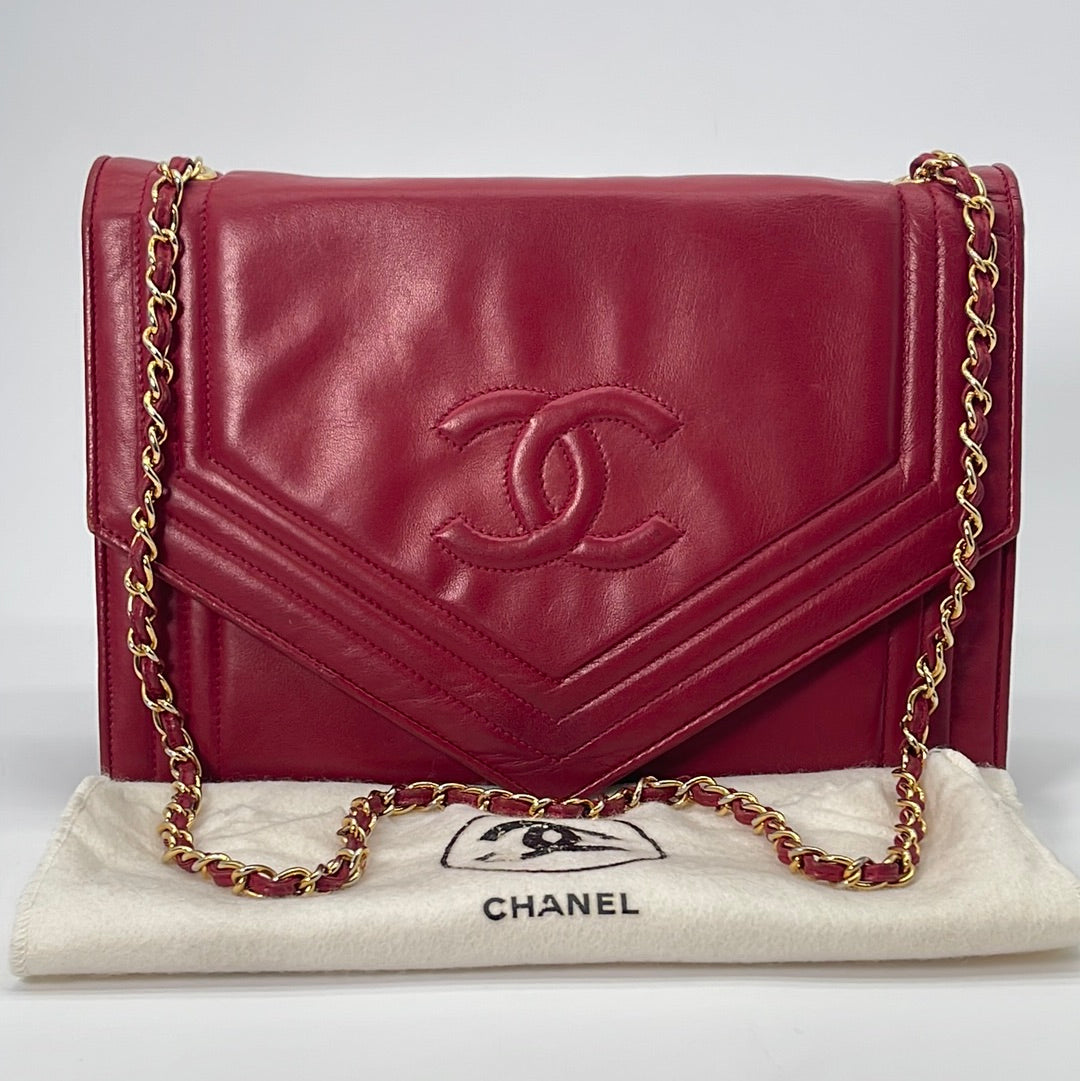 Authentic Vintage CHANEL Red Lambskin CC Logo Chain Shoulder Bag