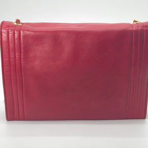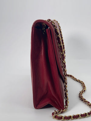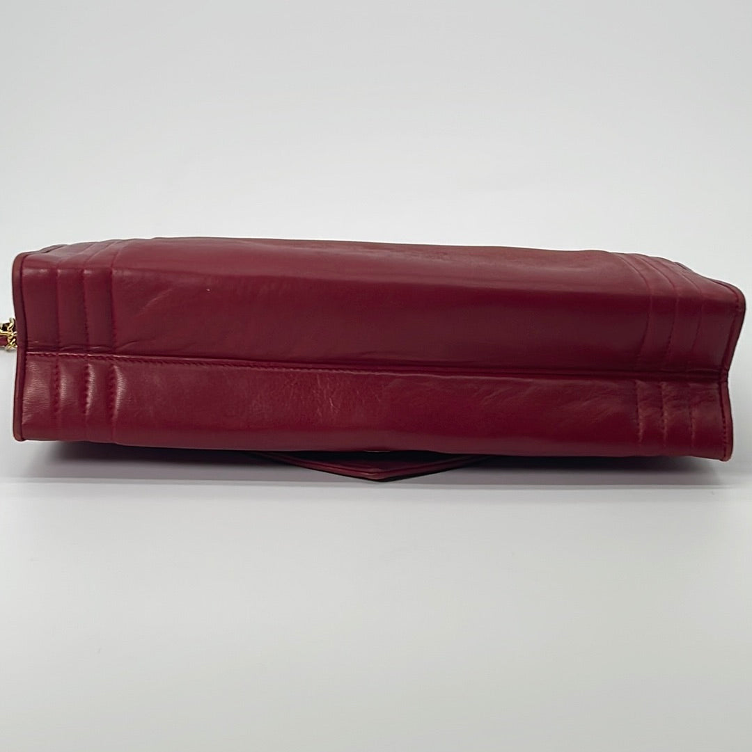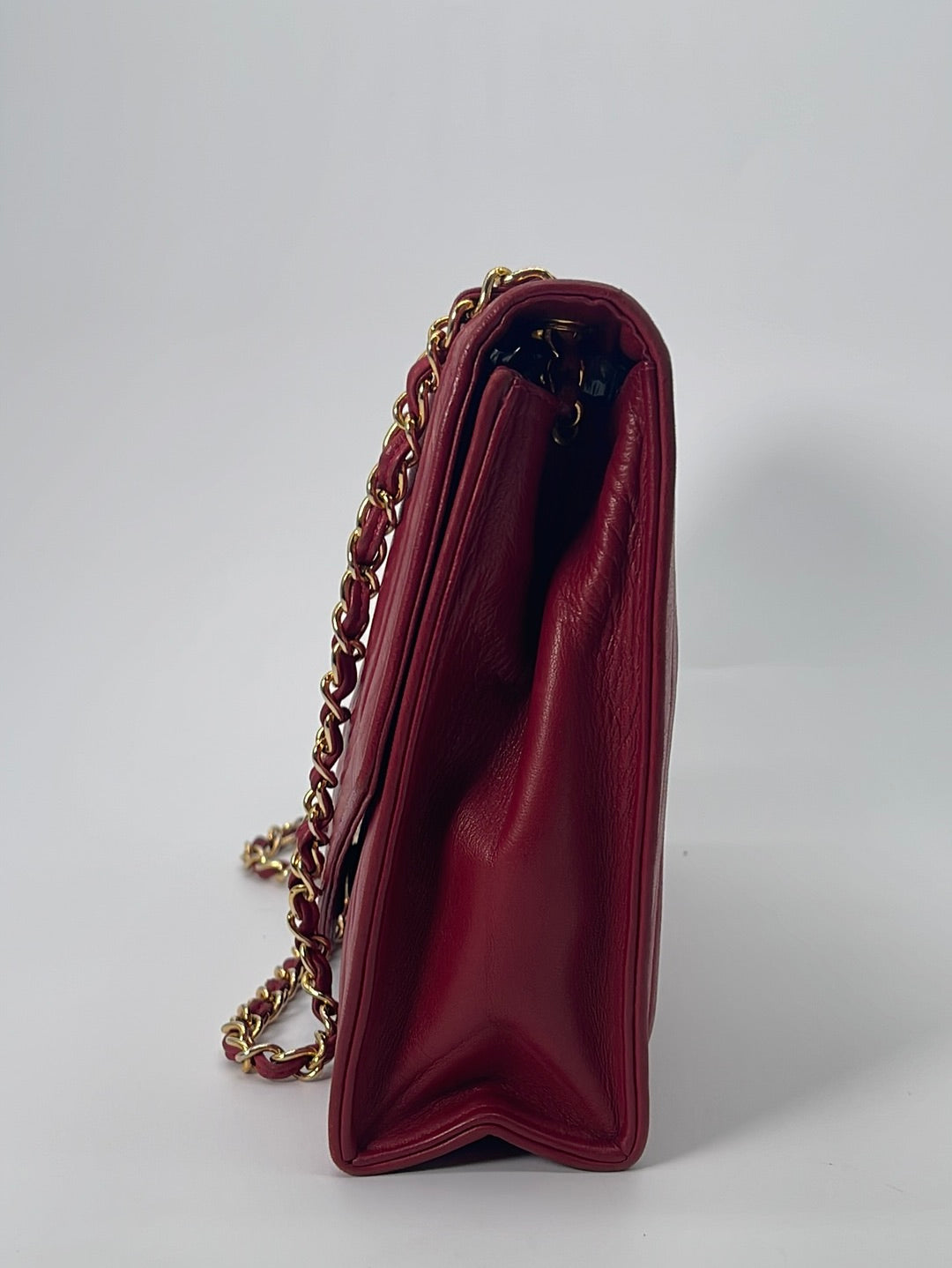 Features: soft red lambskin leather, gold chain shoulder strap.