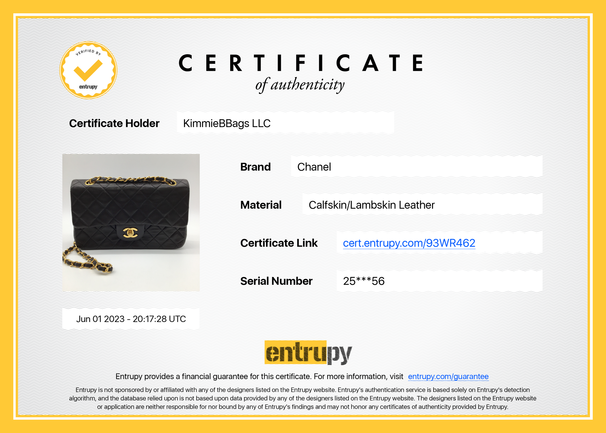 *KimmieBBags LLC is not affiliated with Chanel resold on this site. All bags are on consignment, pre-loved and are in used and/or vintage condition. All bags, wallets, and agendas are guaranteed Authentic by a third party Entrupy. A certificate will accompany each item purchased to verify authenticity.