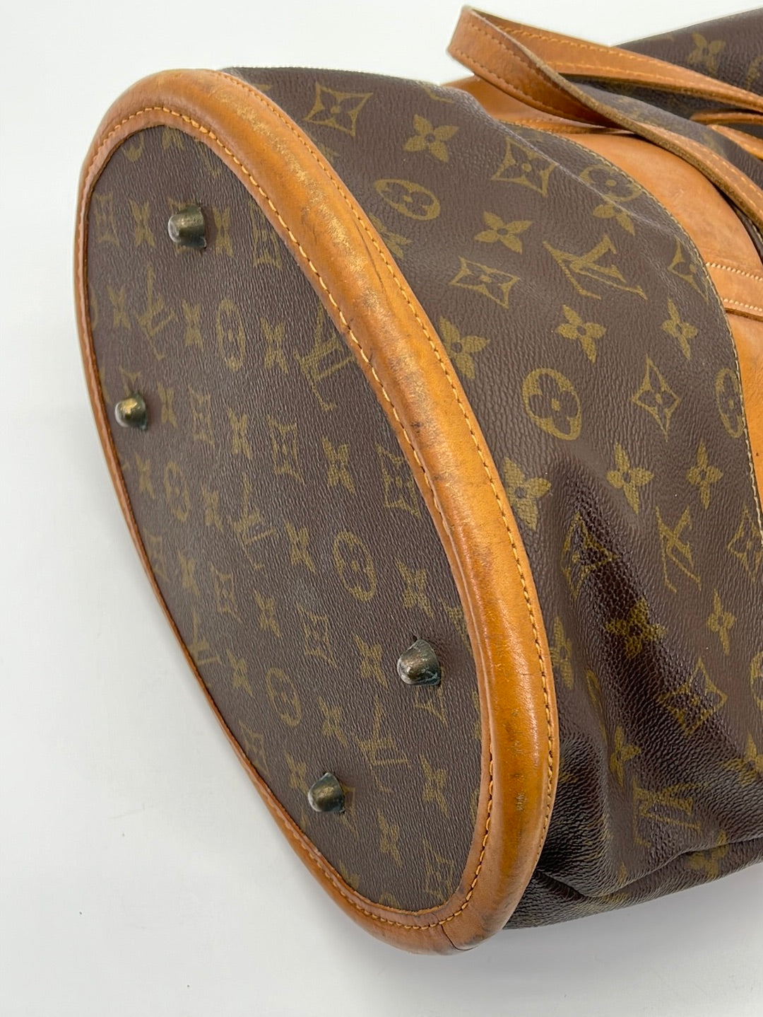 Preloved Vintage Louis Vuitton Monogram Marais GM Bucket Bag. This is a vintage piece that will never go out of style. It features a roomy interior with a zip pocket for securing essentials, and adjustable shoulder straps.