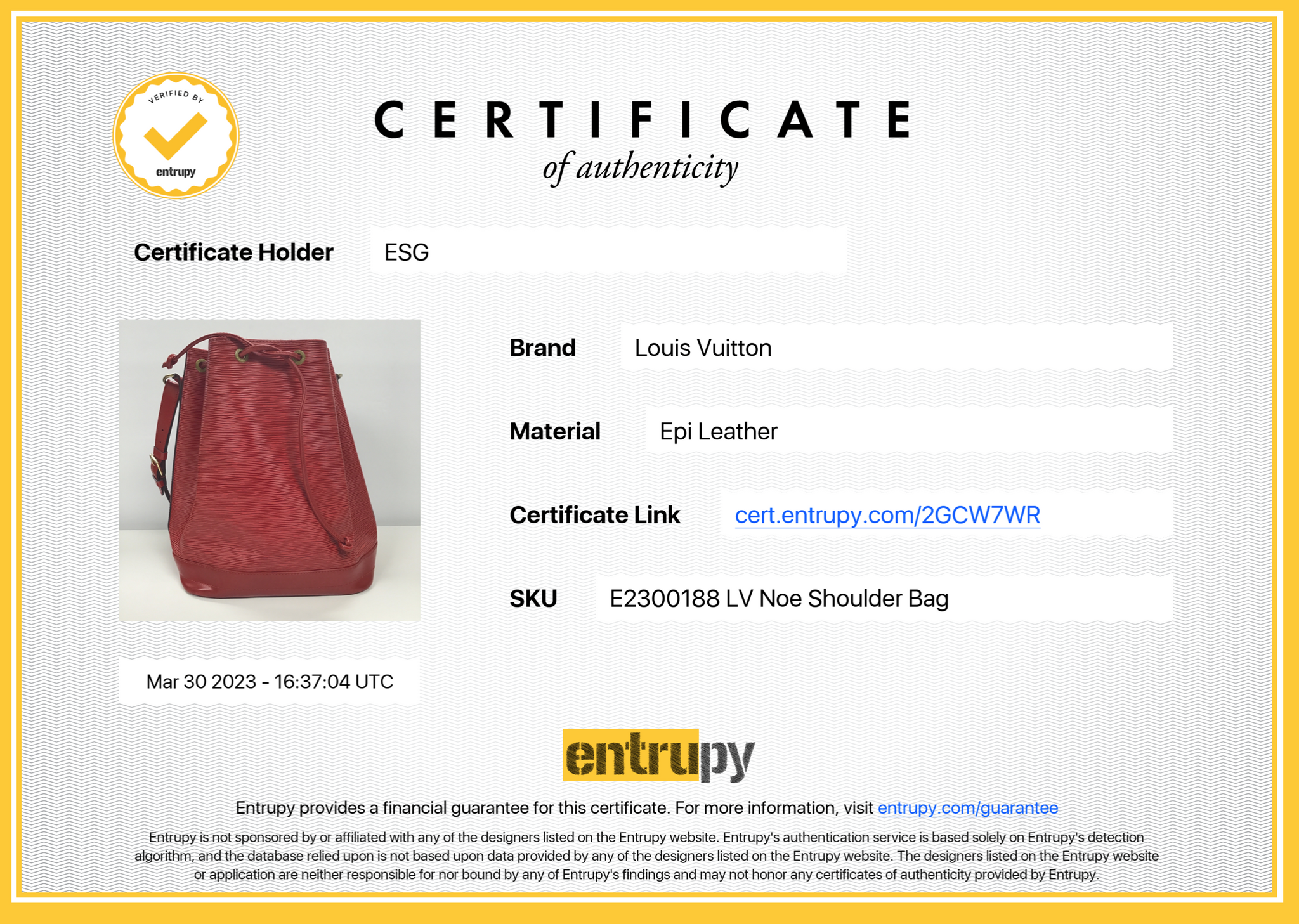 Entrupy letter of Authenticity!