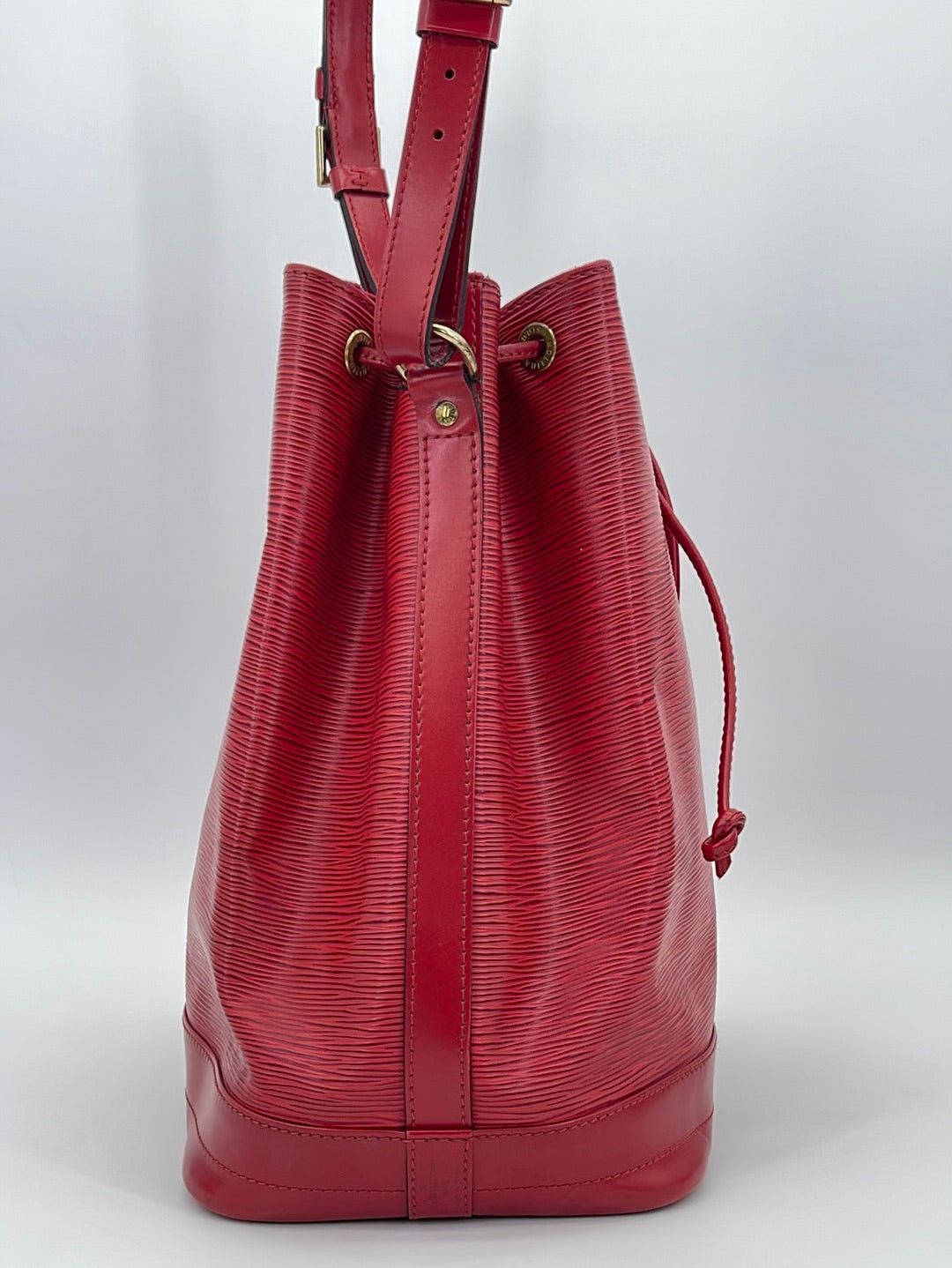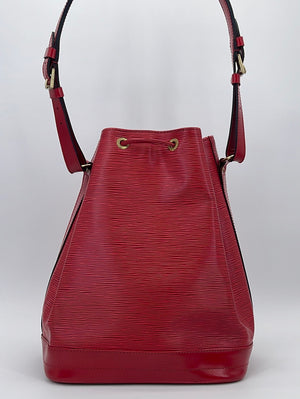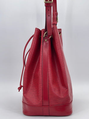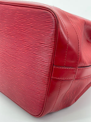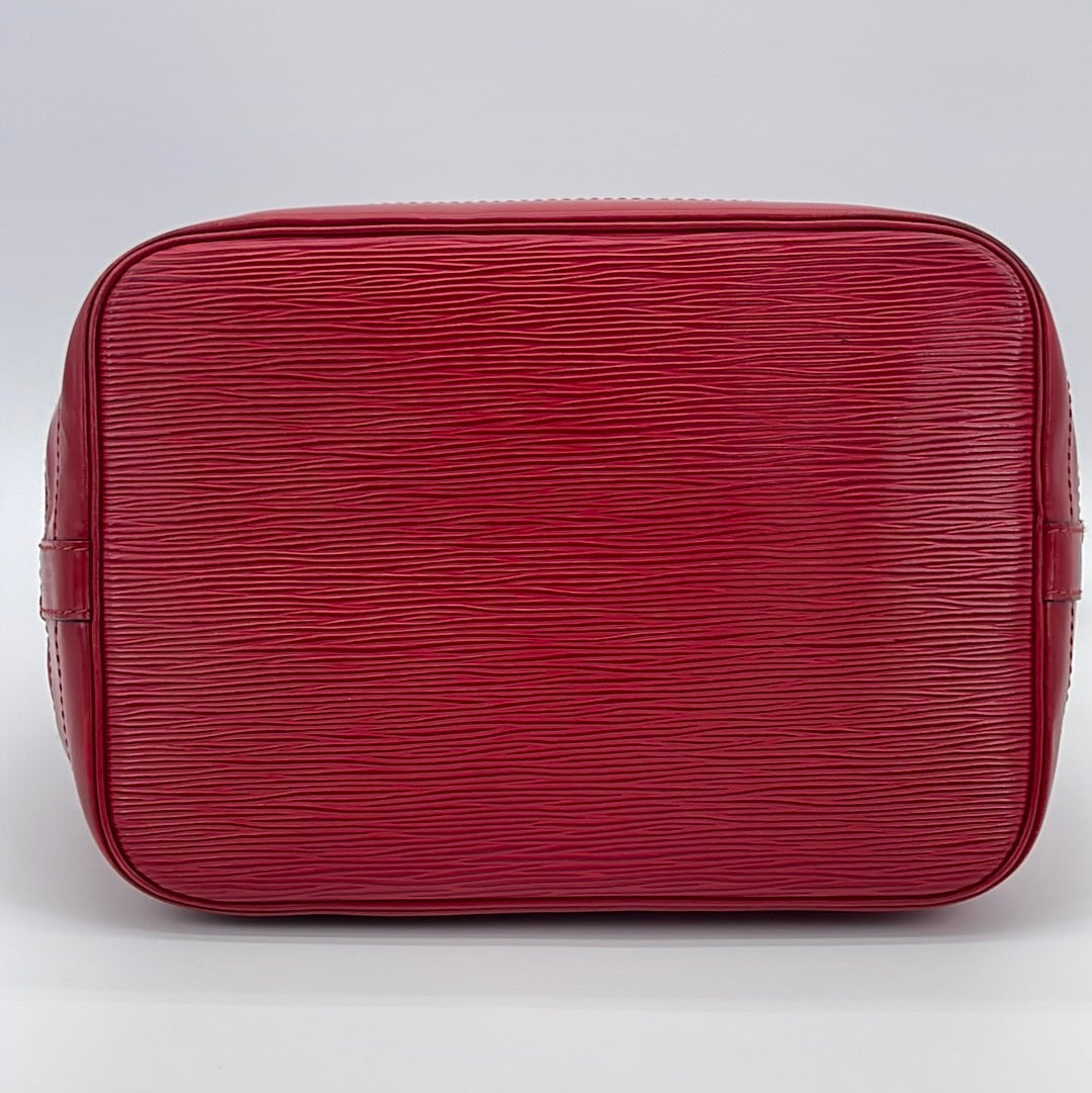 Vintage Louis Vuitton Petite Noe Red Epi Shoulder Bag This is a timeless and favored bag that will never go out of style. It was originally created in 1932 to carry five bottles of Champagne.