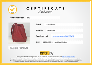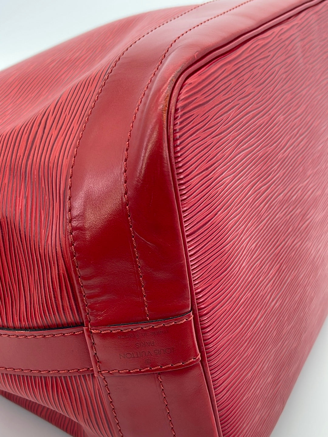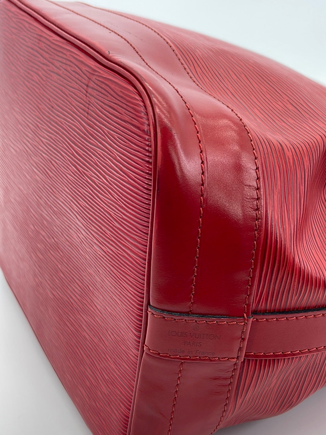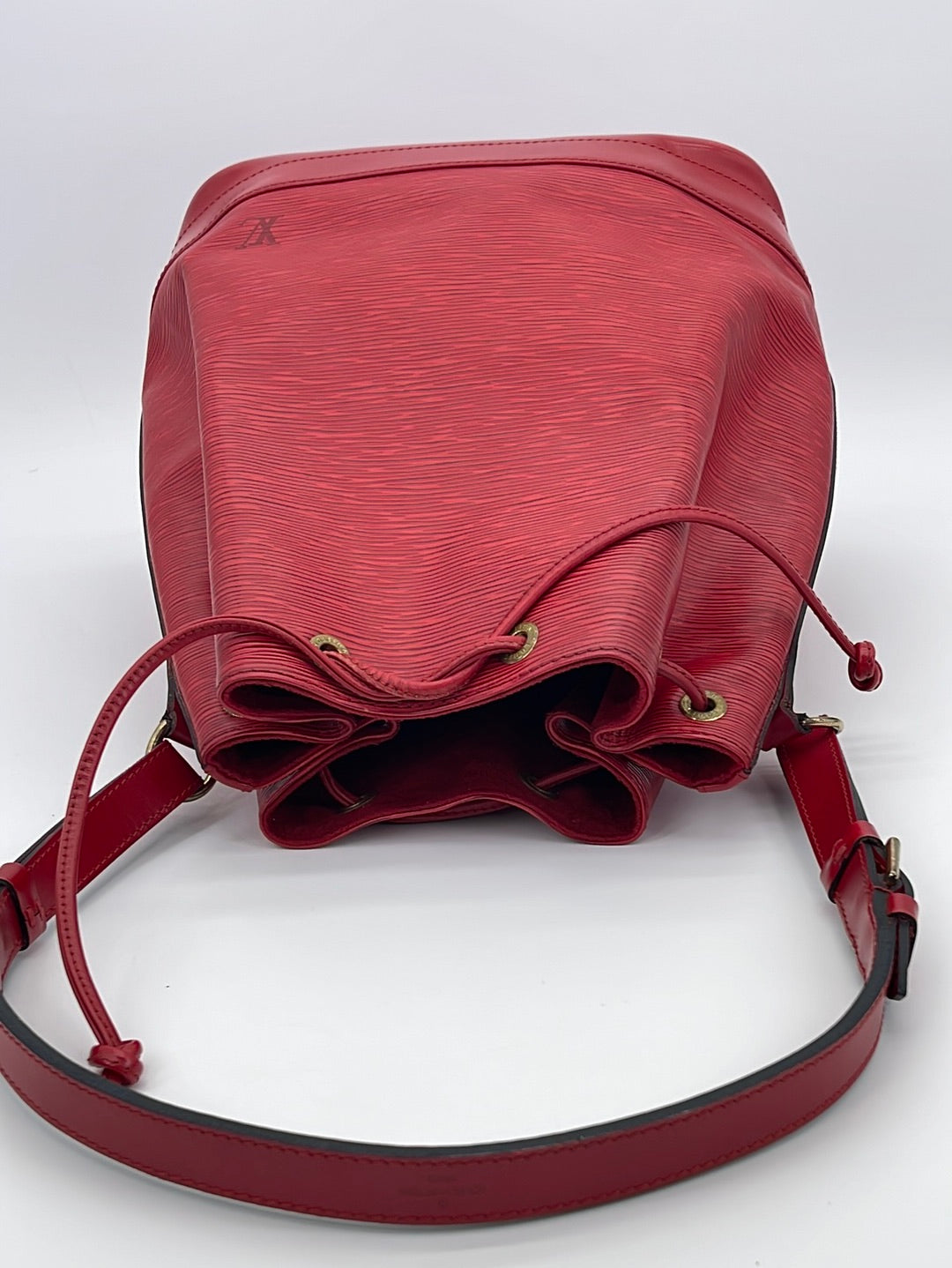 Vintage Louis Vuitton Petite Noe Red Epi Shoulder Bag This is a timeless and favored bag that will never go out of style. It was originally created in 1932 to carry five bottles of Champagne.