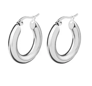 SILVER Circle Hoop Earrings - WHITE GOLD - Stainless Steel 18K Gold Plated Silver 080523